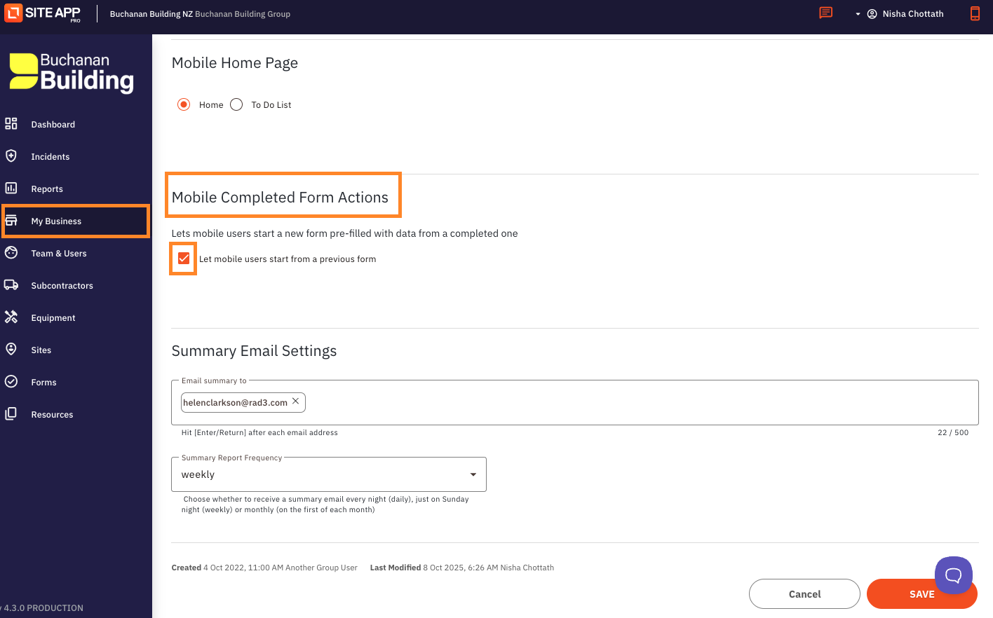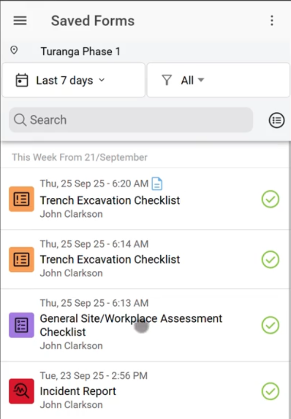 - Copy a saved form from the Saved Forms page and update details like Site, Customer, or Job.