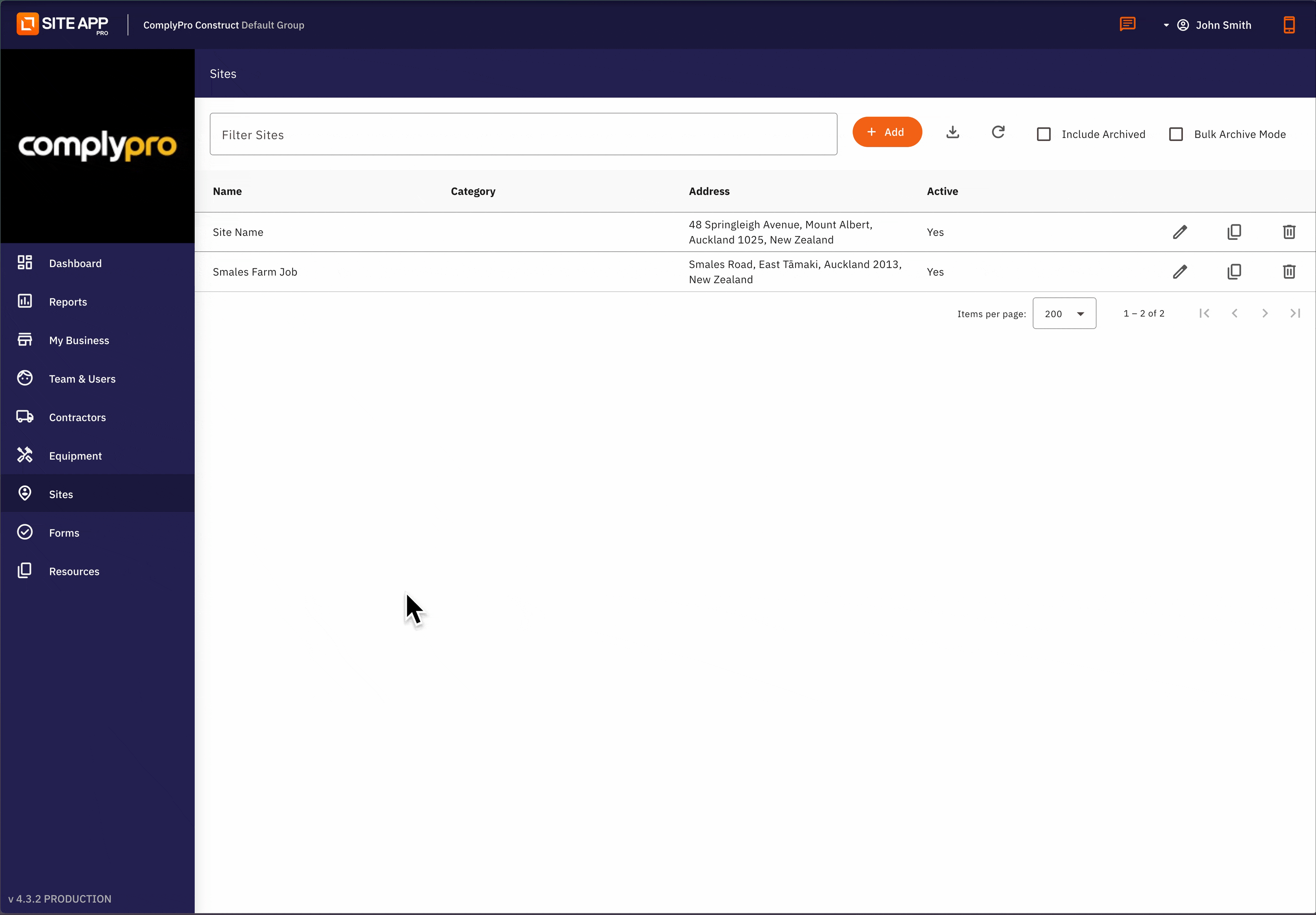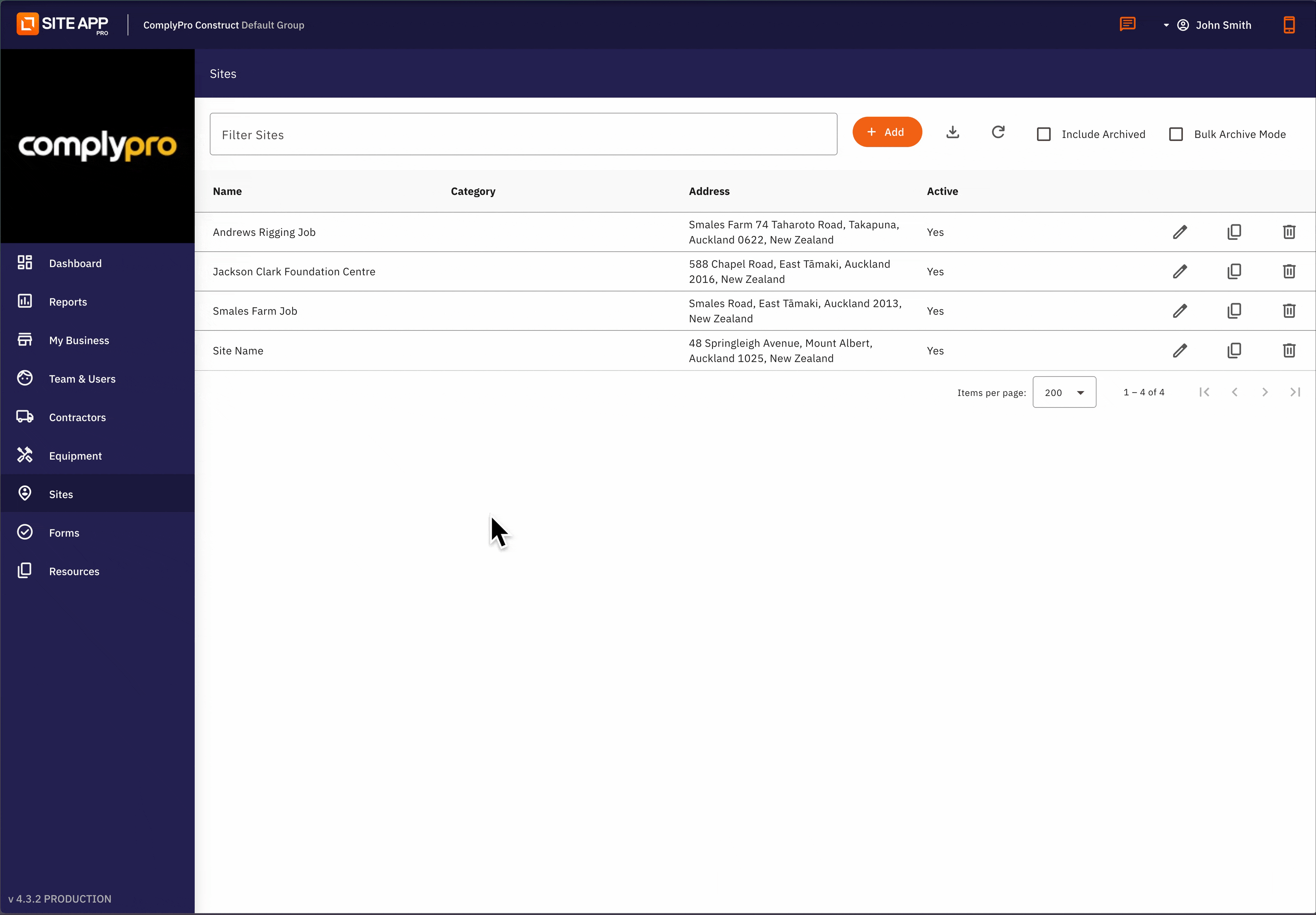 | Active | When a Site is active, it will appear on the App. Hide jobs from your team by unticking the active field |