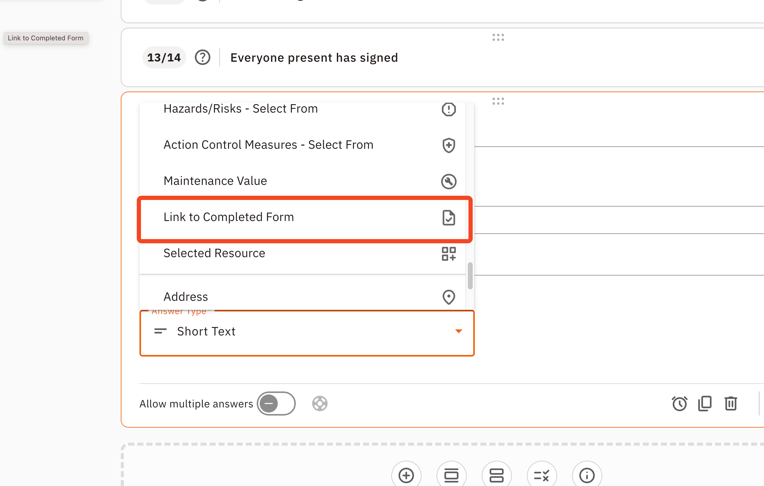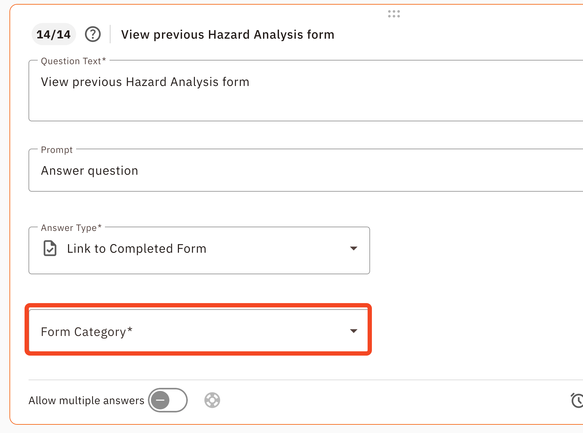 - The form's category: It must be in the same category you selected in the question's settings (e.g., Hazard Analysis, Inspection Reporting, etc.).