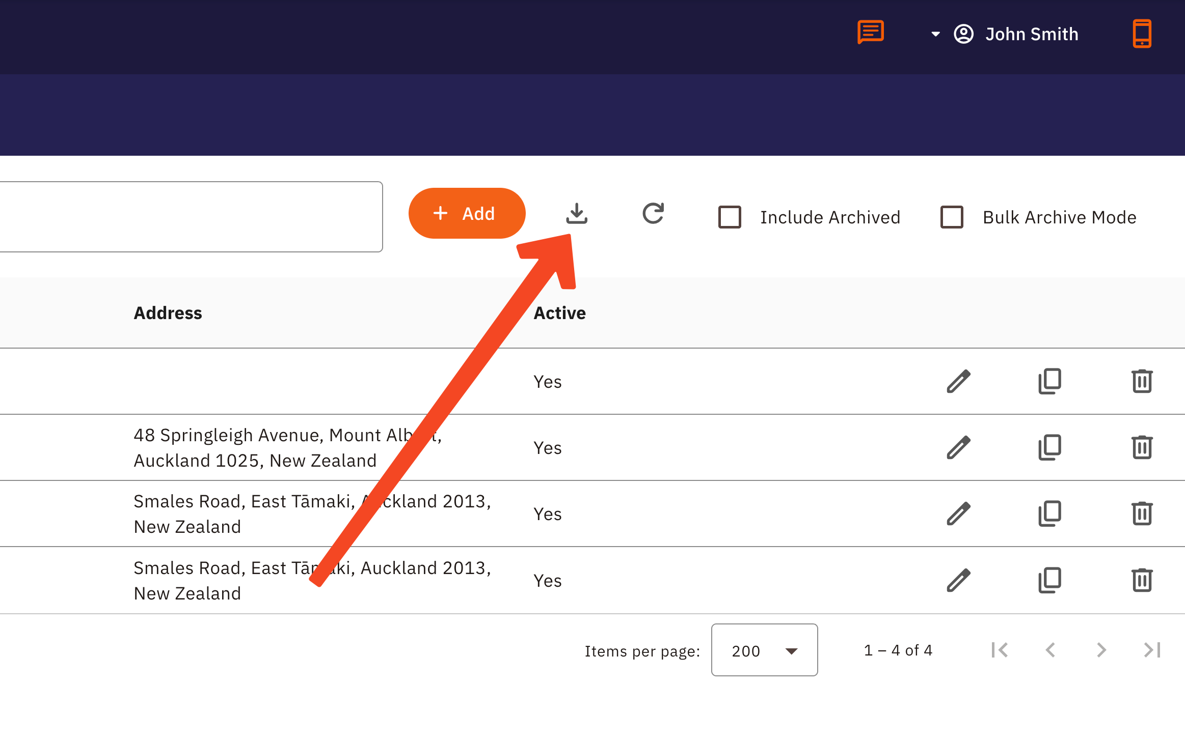 This will only export a list of all current sites, if you need a list of archived jobs you will need to unarchive them before exporting the list.
